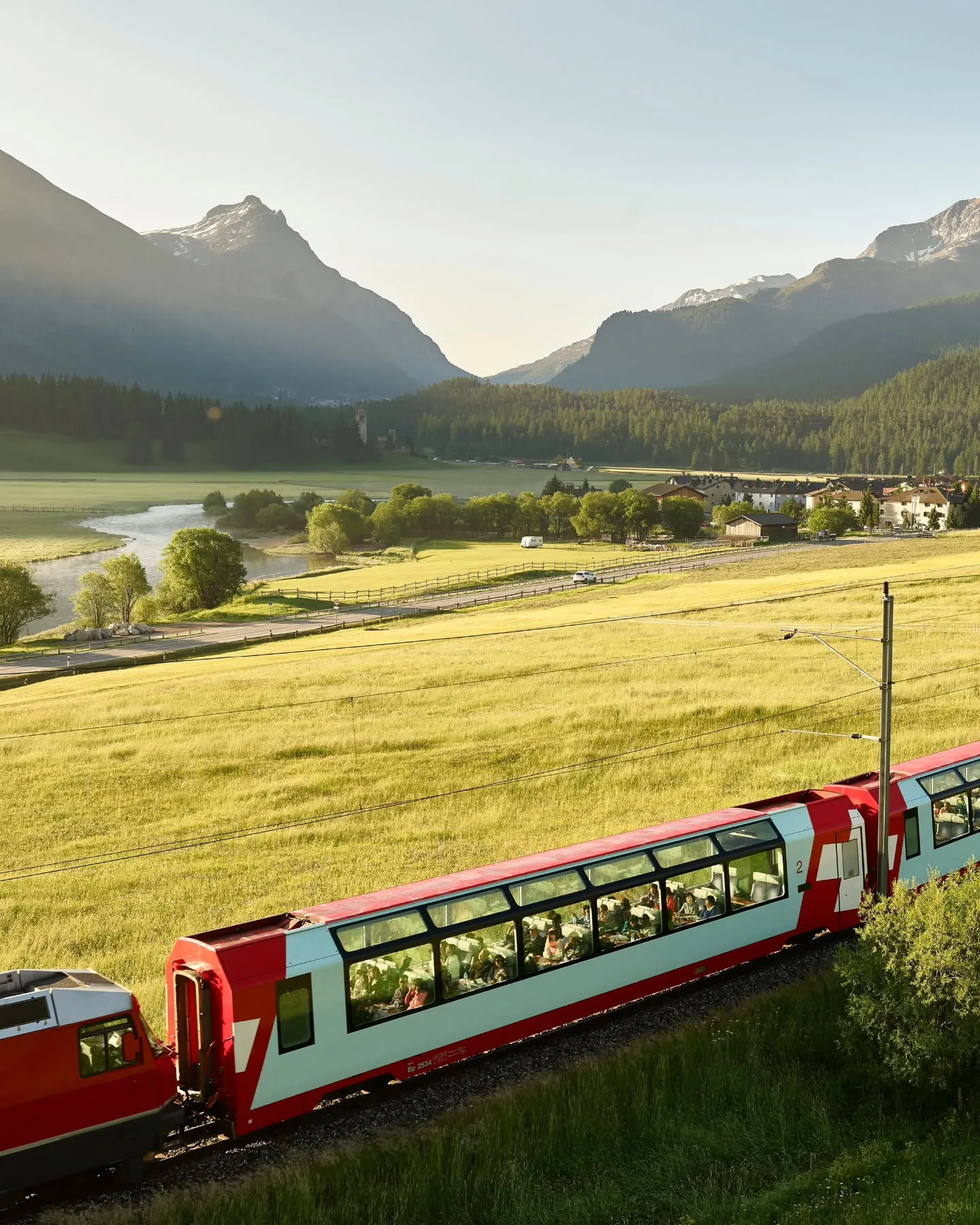 This legendary route winds through the heart of the Swiss Alps, connecting Zermatt and St. Moritz. Over eight hours, the Glacier Express passes snow-capped peaks, deep gorges, charming villages, and more than 290 bridges.