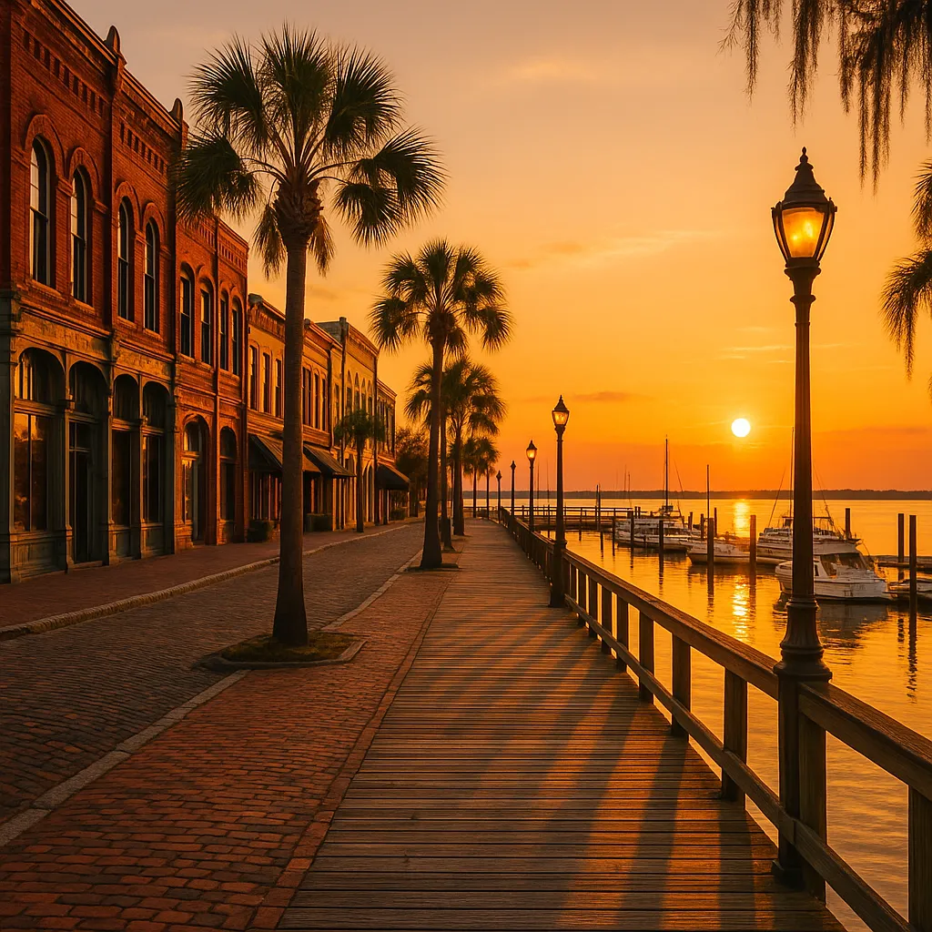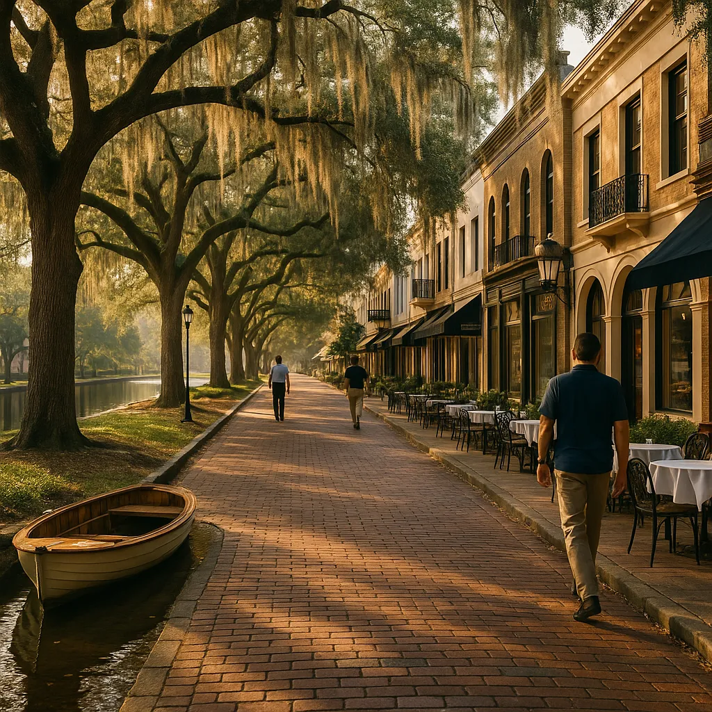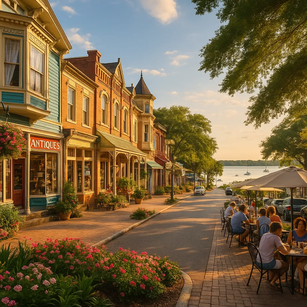 - Brick-paved streets, craft breweries, and riverside restaurants.