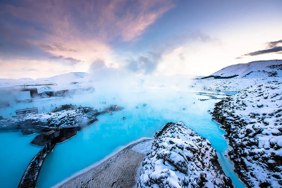The Blue Lagoon is a geothermal spa with milky blue waters set against black lava fields. This iconic location is perfect for both landscape and lifestyle shots. Steam rising from the water adds a dreamy, otherworldly quality.