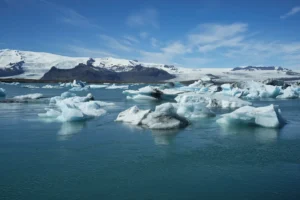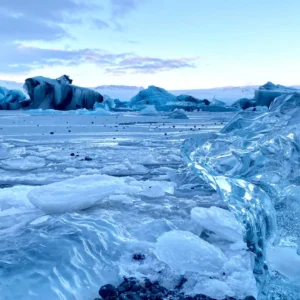 Jökulsárlón is a glacier lagoon filled with floating icebergs of all shapes and sizes. The shimmering blue ice, reflections, and occasional seals make it one of the most photogenic spots in Iceland. Nearby is the Diamond Beach, where ice chunks from the lagoon wash ashore on black sand, creating surreal contrasts.