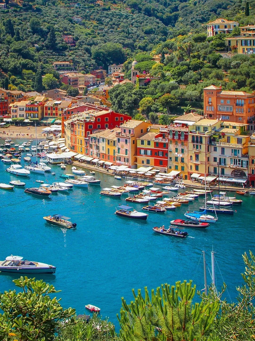 Portofino is small, refined, and effortlessly beautiful. Soft-colored buildings surround a calm harbor, while yachts bob gently in the water.