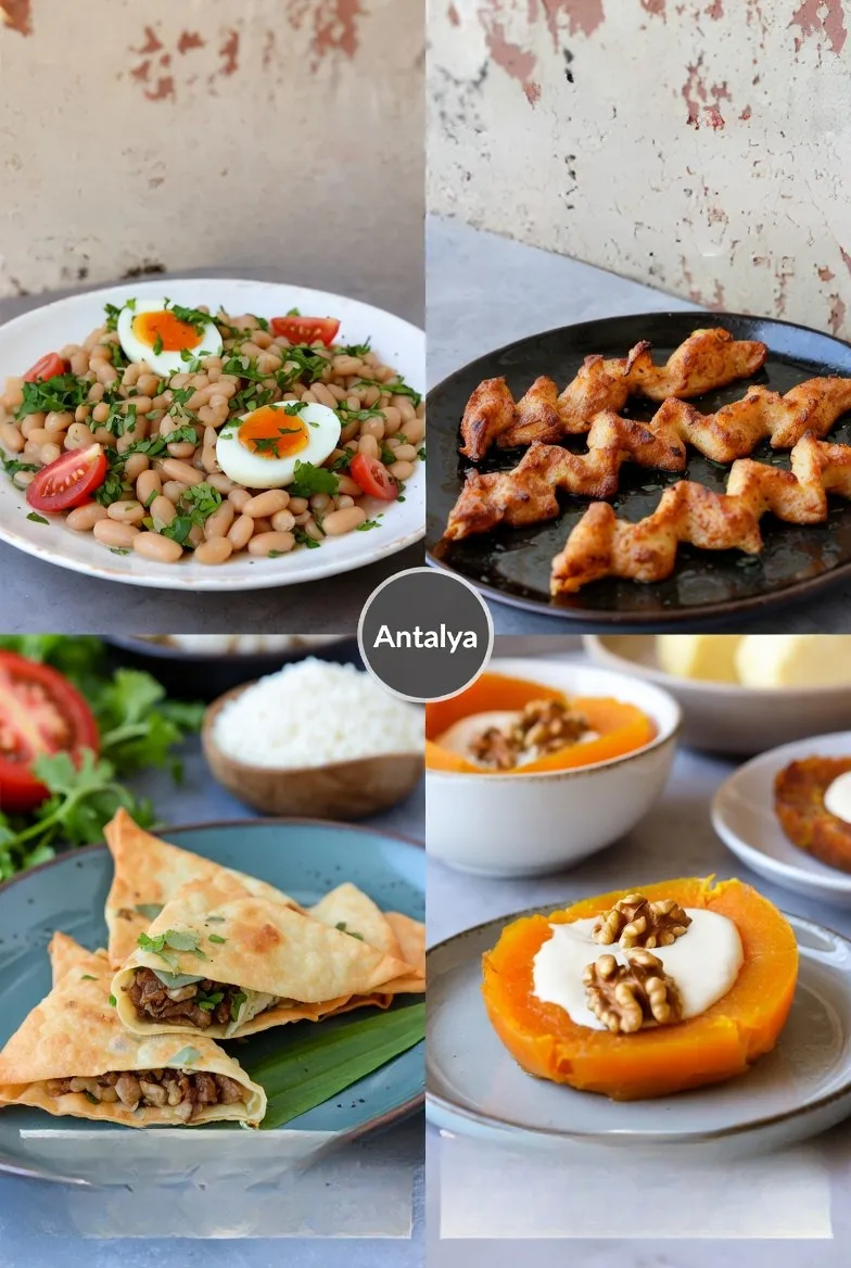 - Piyaz: Antalya’s signature dish. Don’t confuse it with the onion and sumac salad found elsewhere in Turkey. Here, it’s a hearty main dish of white beans in a tangy tahini and vinegar sauce, topped with chopped boiled egg, parsley, and tomatoes.