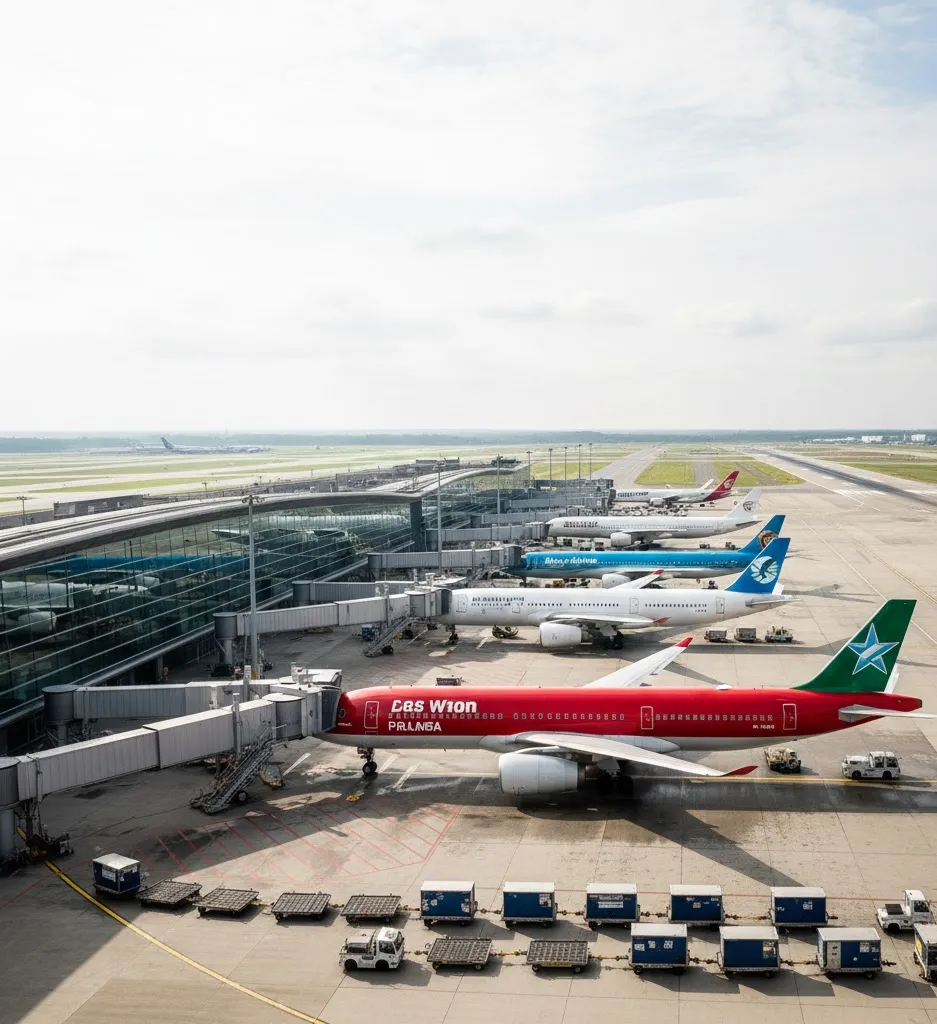 - Major carriers include Delta Air Lines, British Airways, Virgin Atlantic, American Airlines, and international partners.