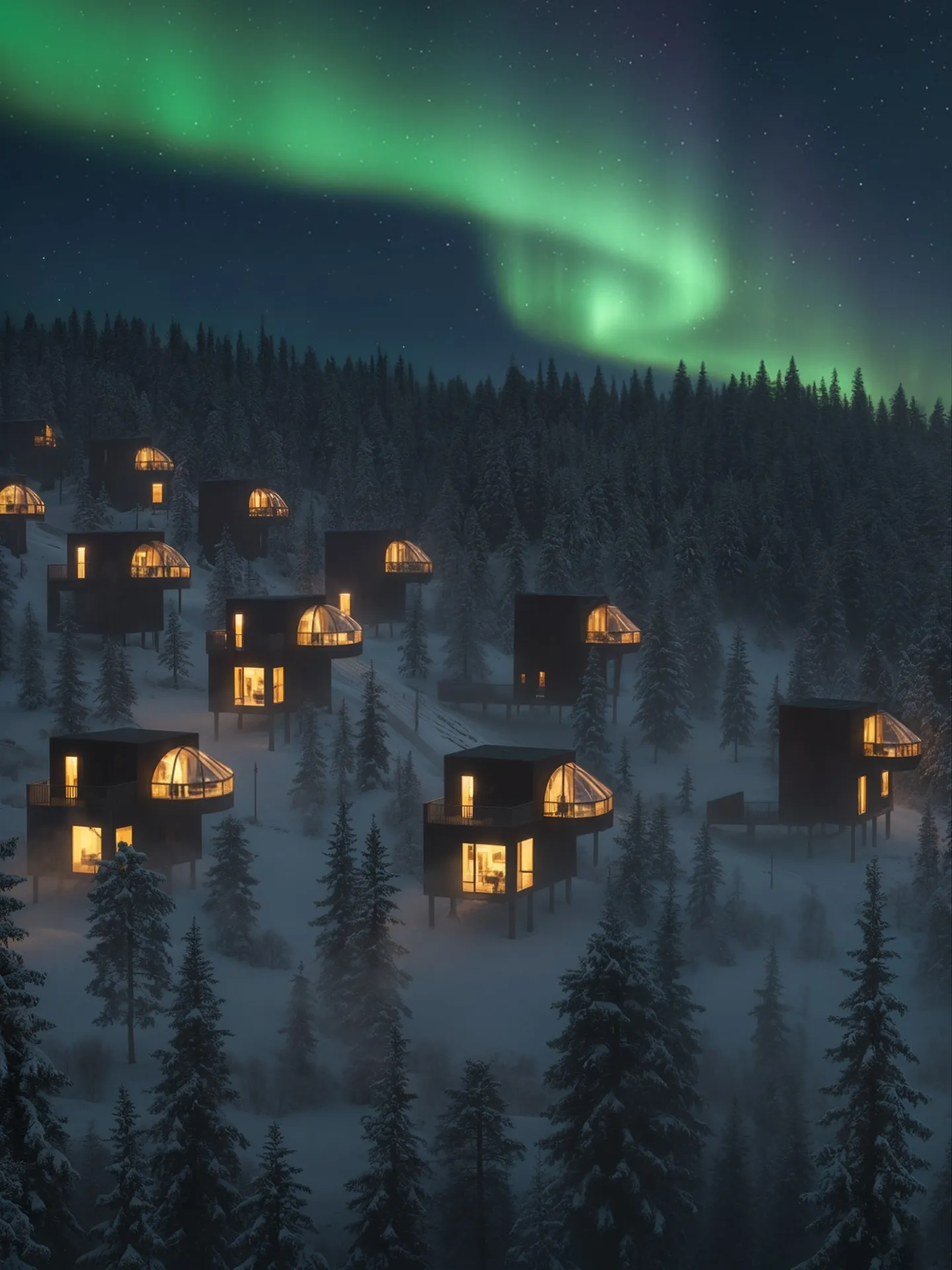 - Aurora-lit skies