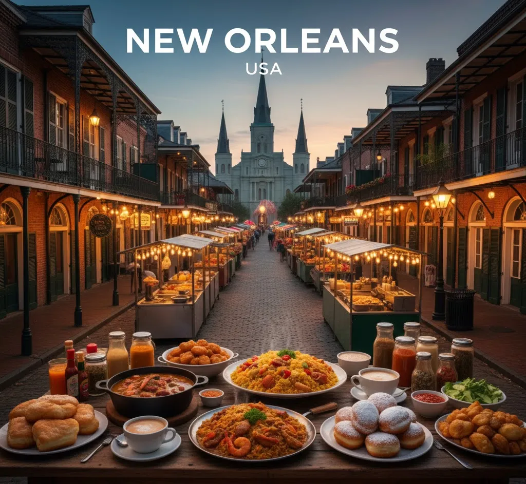 New Orleans brings together Creole and Cajun cuisine. Gumbo, jambalaya, beignets, and rich cultural influences make it one of Americaโs most distinctive food destinations.