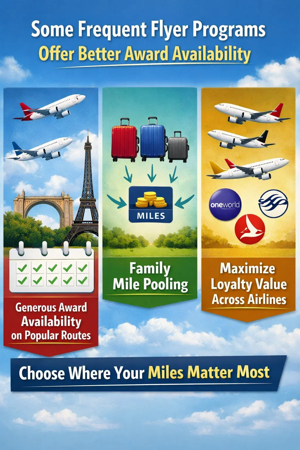 If your miles are with one airline but you fly multiple carriers, consider where loyalty actually pays off most.