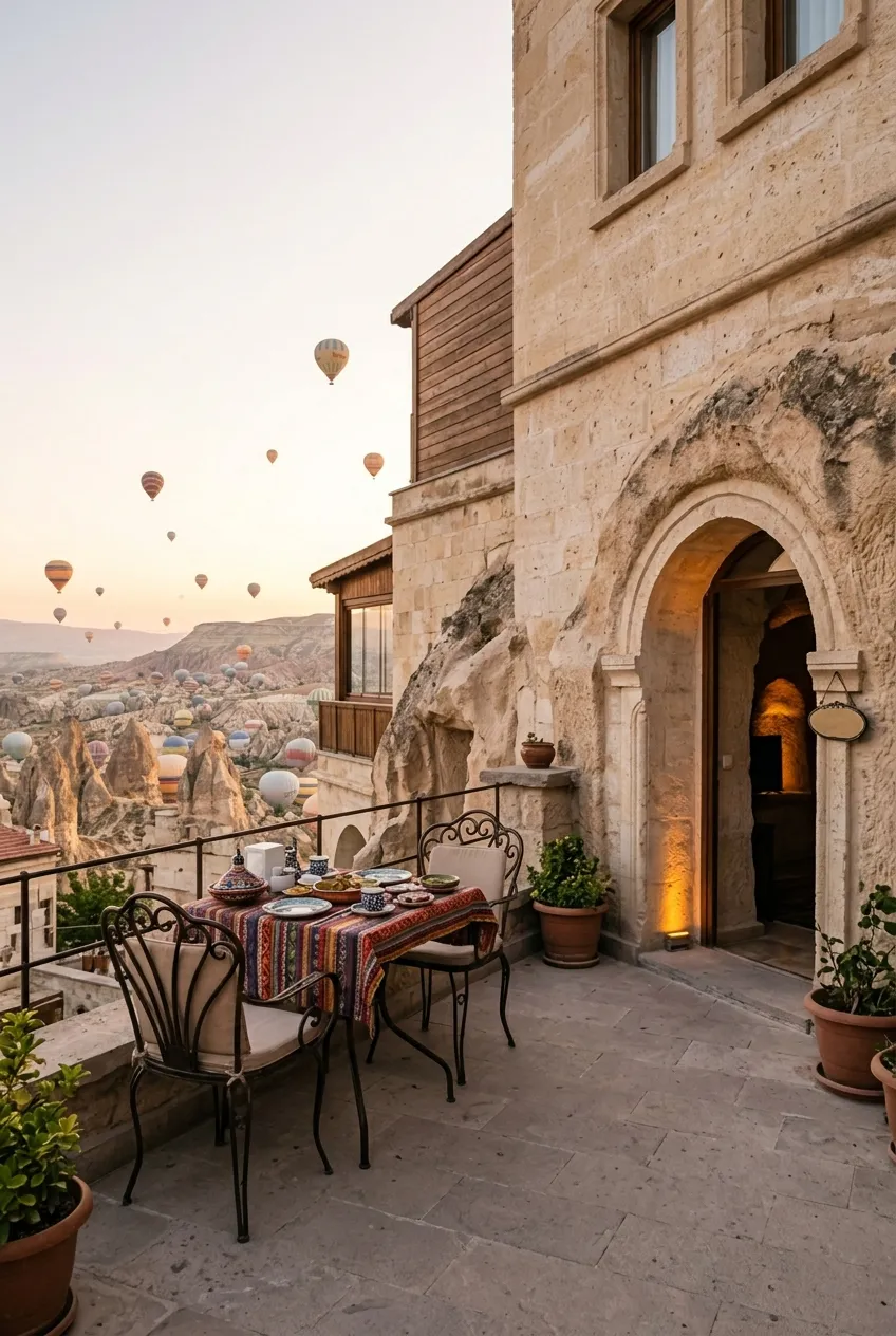 Having breakfast with views over Göreme while watching the balloons float in the sky was pure joy.