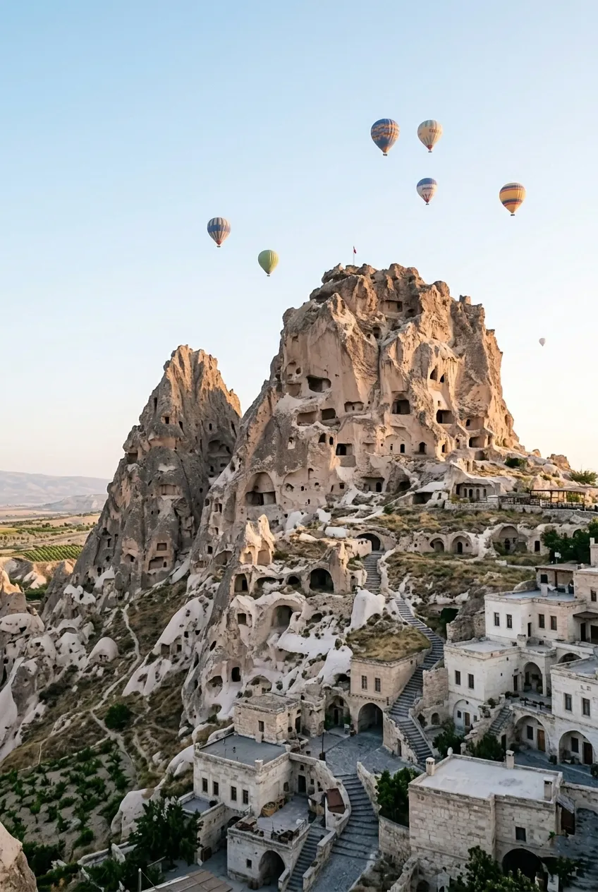 The name Uçhisar means “outer citadel,” referring to the huge castle carved into the tallest rocky cone of the town. This fortress, with its 60-meter height, is one of the most visited landmarks in the region.