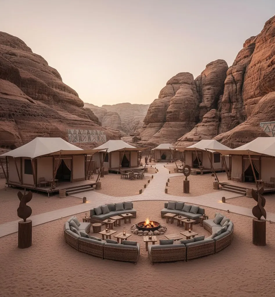Also nestled amid the sandstone canyons of AlUla, Our Habitas offers a distinct luxury experience rooted in art and culture. It’s not simply a resort — it’s a modern take on desert living, blending community, immersive programs, and upscale design.