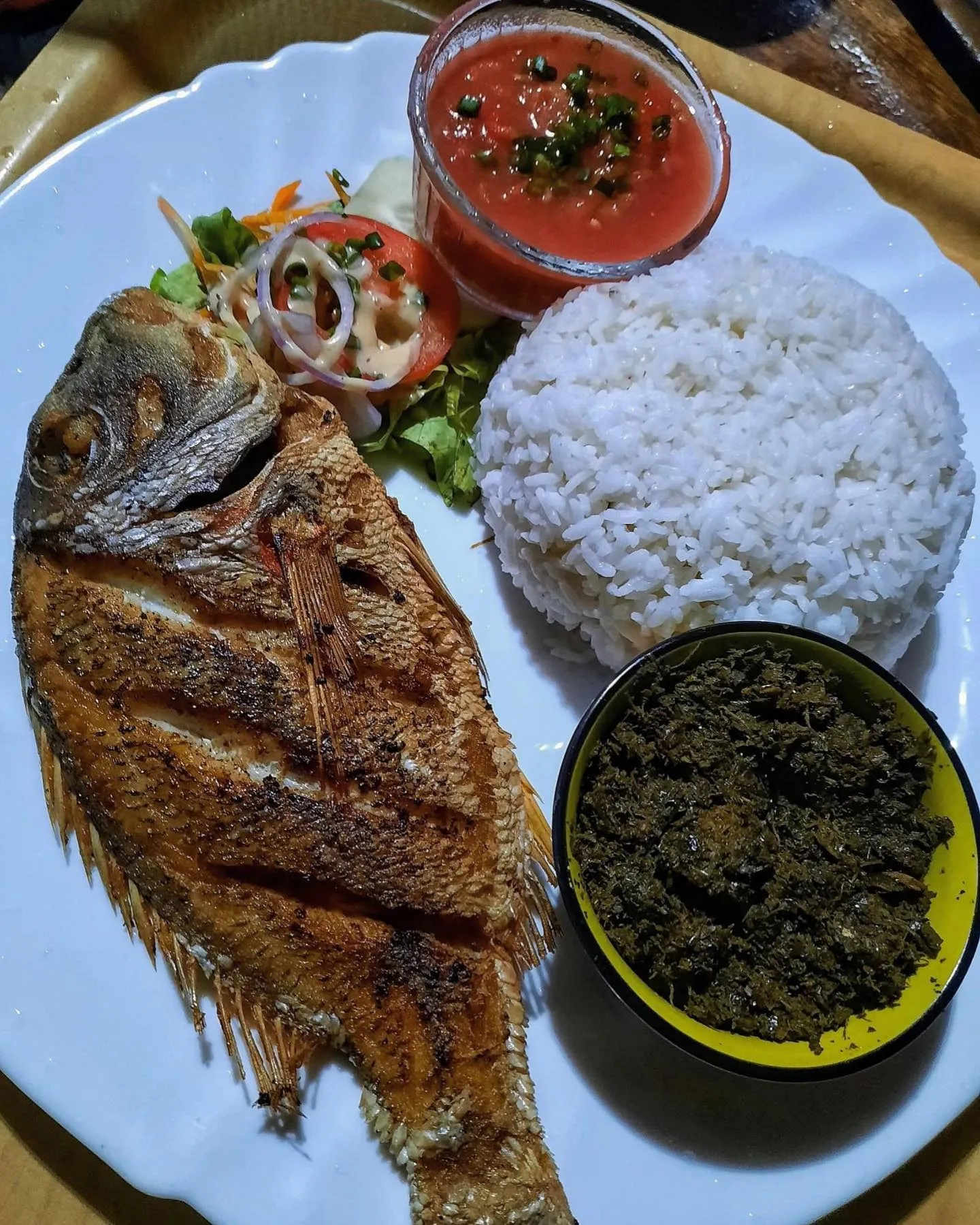 - Ravitoto: Crushed cassava leaves cooked with fish