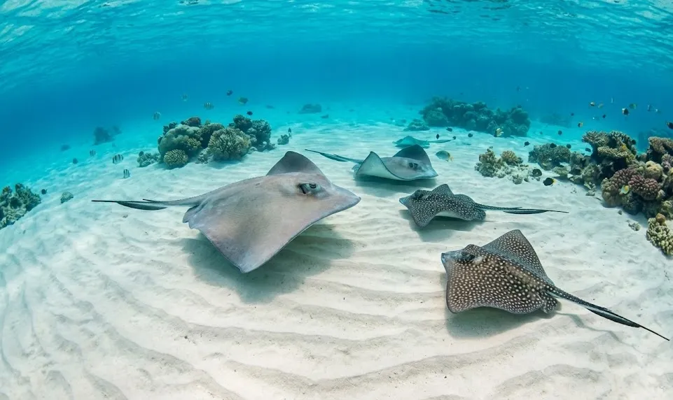 A short speedboat ride brings you to the area near Fulidhoo Island, where you’ll stop to snorkel among stingrays. These elegant creatures glide through shallow waters — a serene and unique experience.