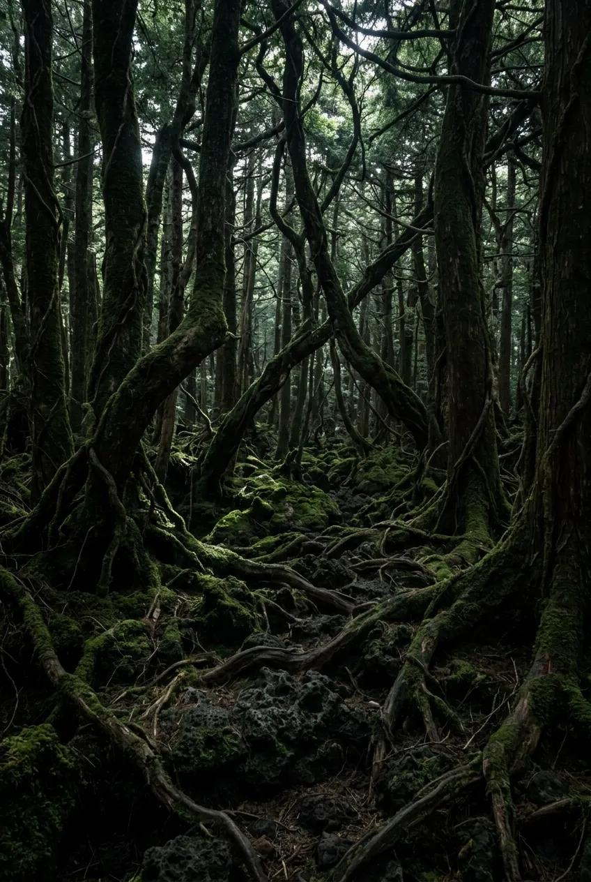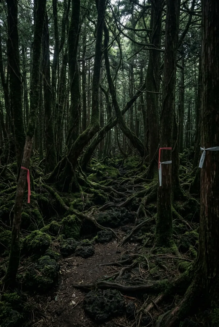 The Aokigahara Forest, which is thick and scary, is at the base of Mount Fuji.