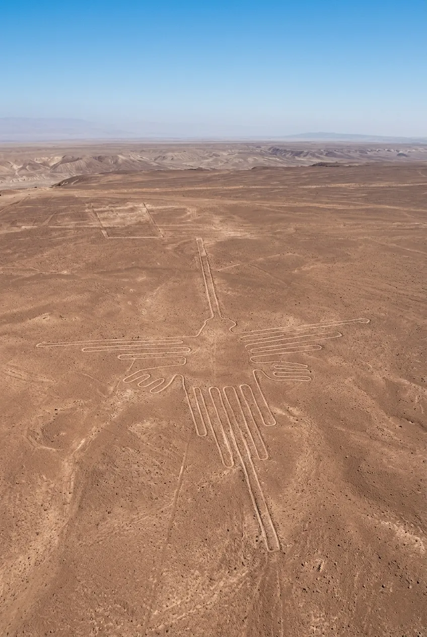 Huge geoglyphs carved into the desert floor. Shapes that are just right. Lines, symbols, and animals. Only visible from the air. Made more than 2000 years ago.