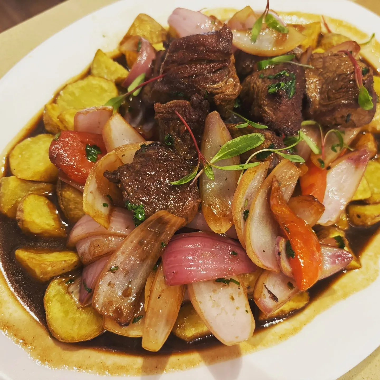 - Lomo Saltado: Stir-fried beef with onions, tomatoes, and fries