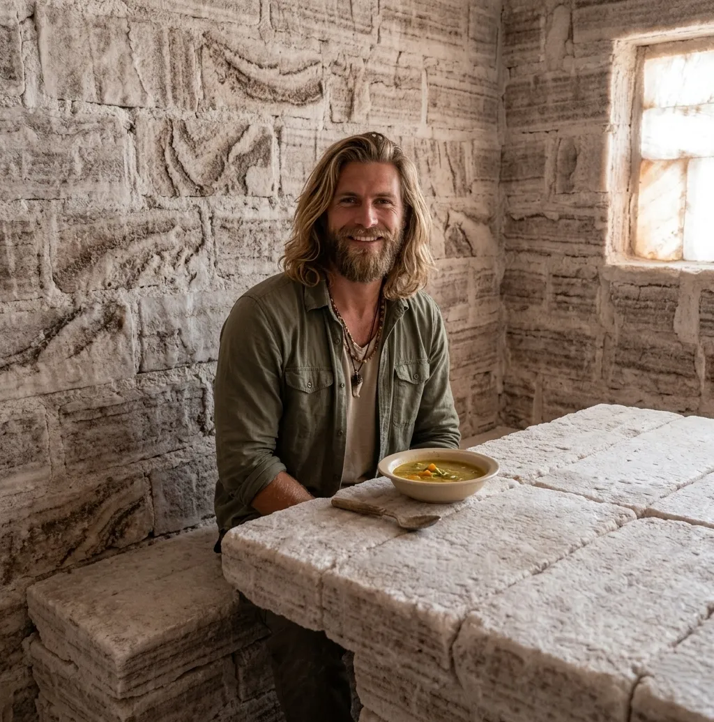 Walls, tables, and even some decorative elements are made from salt blocks.