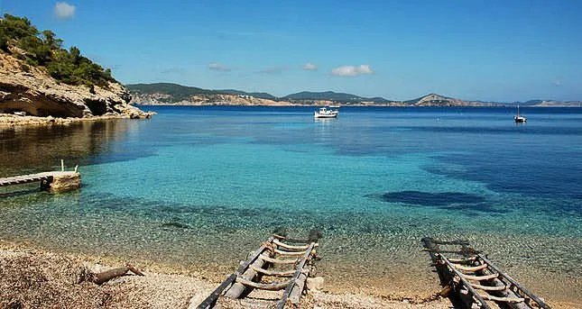 Imagine a small, horseshoe-shaped bay surrounded by pine-covered cliffs and dotted with old fishermen’s huts — that’s Es Portitxol. Located on Ibiza’s north coast, this secluded spot is accessible only via a steep 30-minute hike from the road near San Miguel.