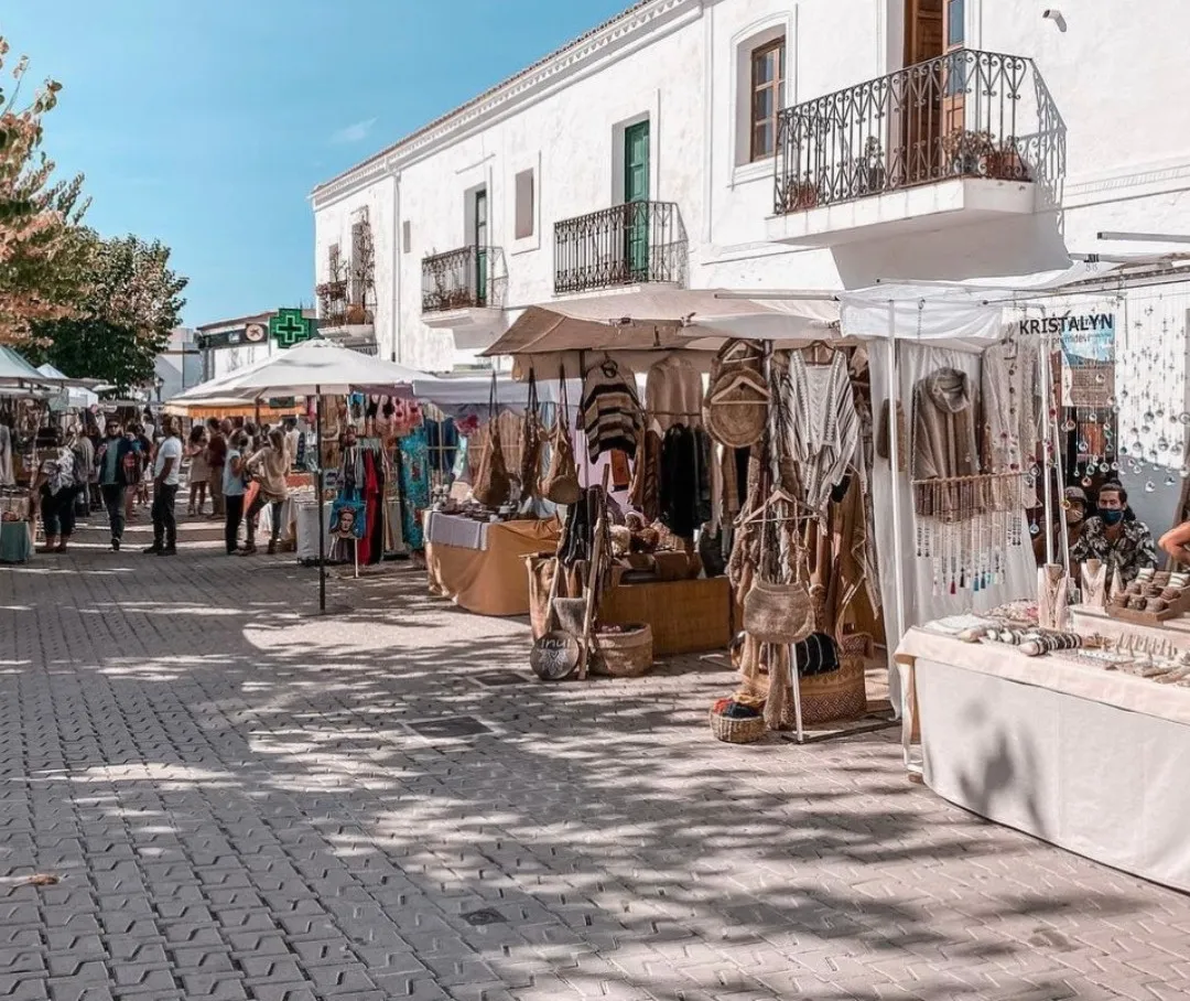You can browse handmade jewelry, organic skincare, and local crafts, or just sit under the trees listening to live drumming. It’s a window into the bohemian soul of Ibiza — the part that existed long before beach clubs and champagne brunches.