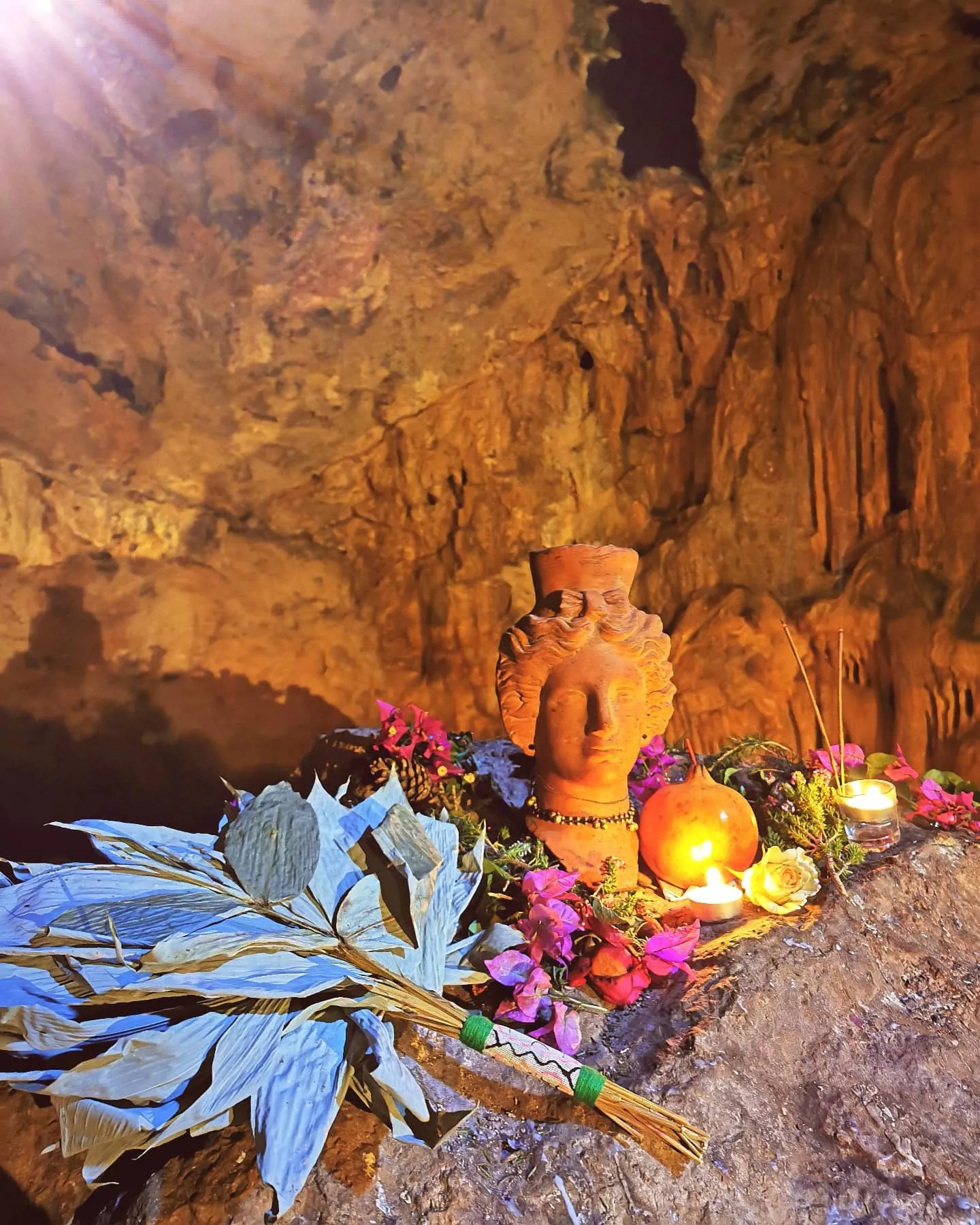 The cave is small but atmospheric, surrounded by forest and mystery. Standing inside, you can feel the ancient energy of the island.