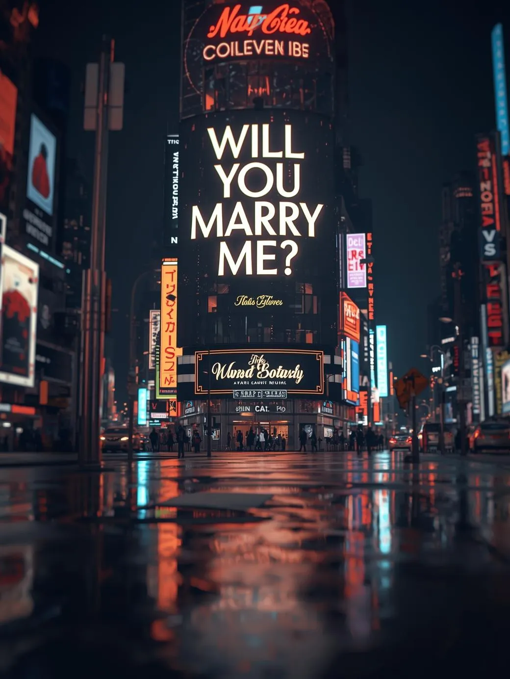 A proposal message up on a billboard? Talk about unforgettable. Pops the question. Then watch her reaction when she sees it in Times Square.