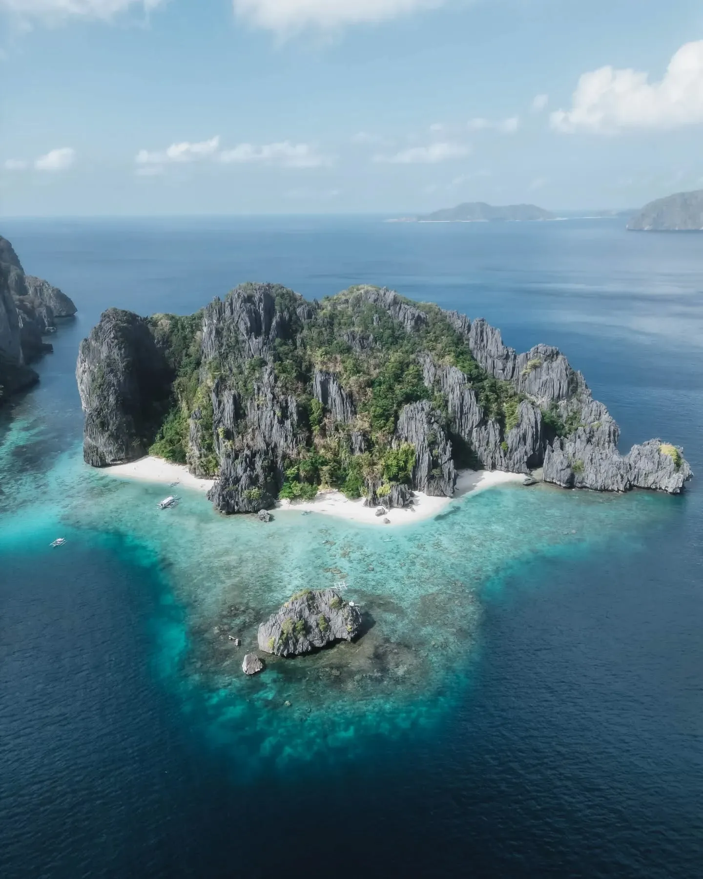 Shimizu Island is a photographerโs dream. The contrast between the turquoise water, bright sand, and dark limestone cliffs creates a stunning natural composition. If you have a drone (and proper permission), you can capture breathtaking aerial shots of the island and Bacuit Bayโs surrounding seascape.