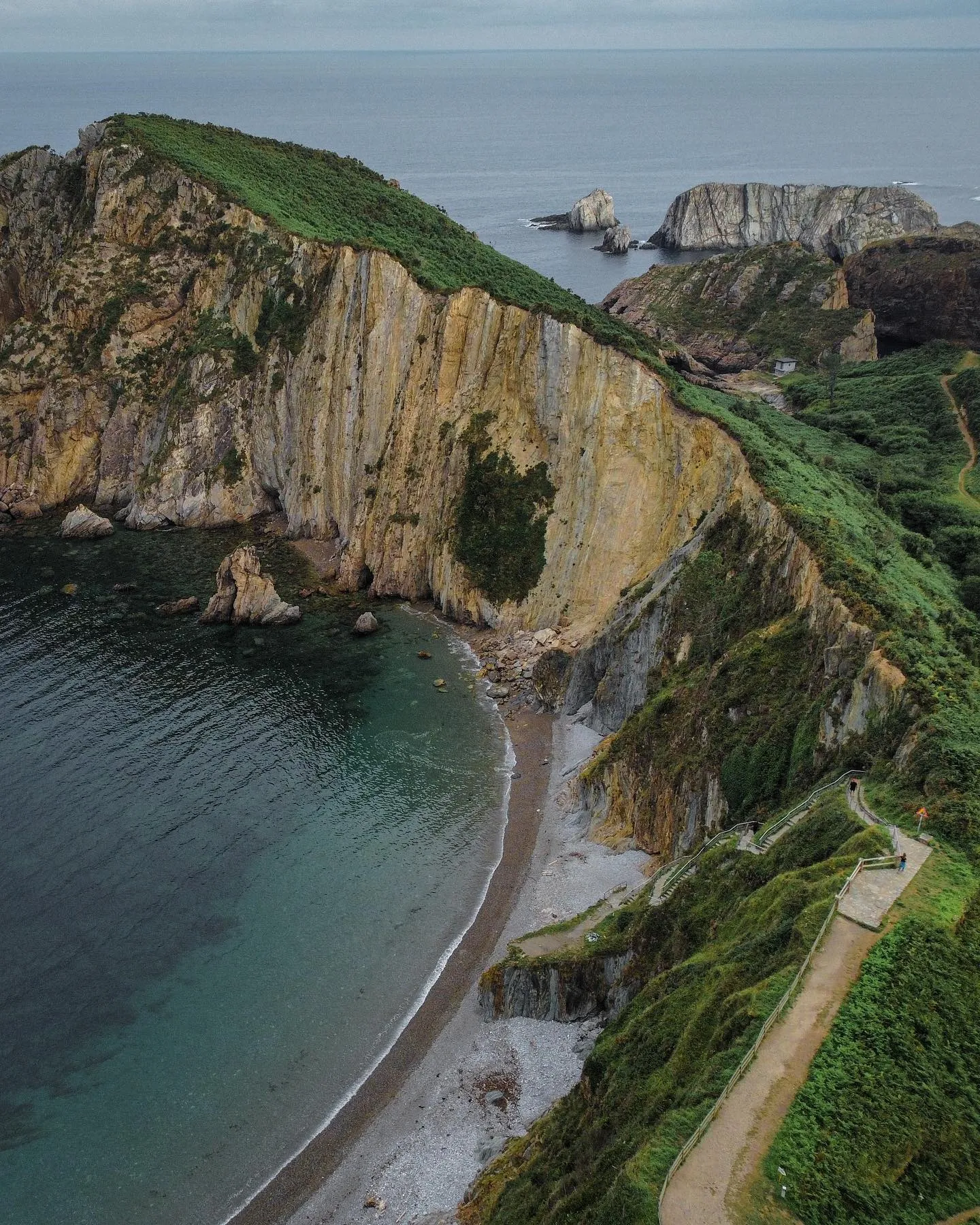 A dramatic northern beach surrounded by cliffs and greenery, perfect for travellers seeking scenery over sunbeds.