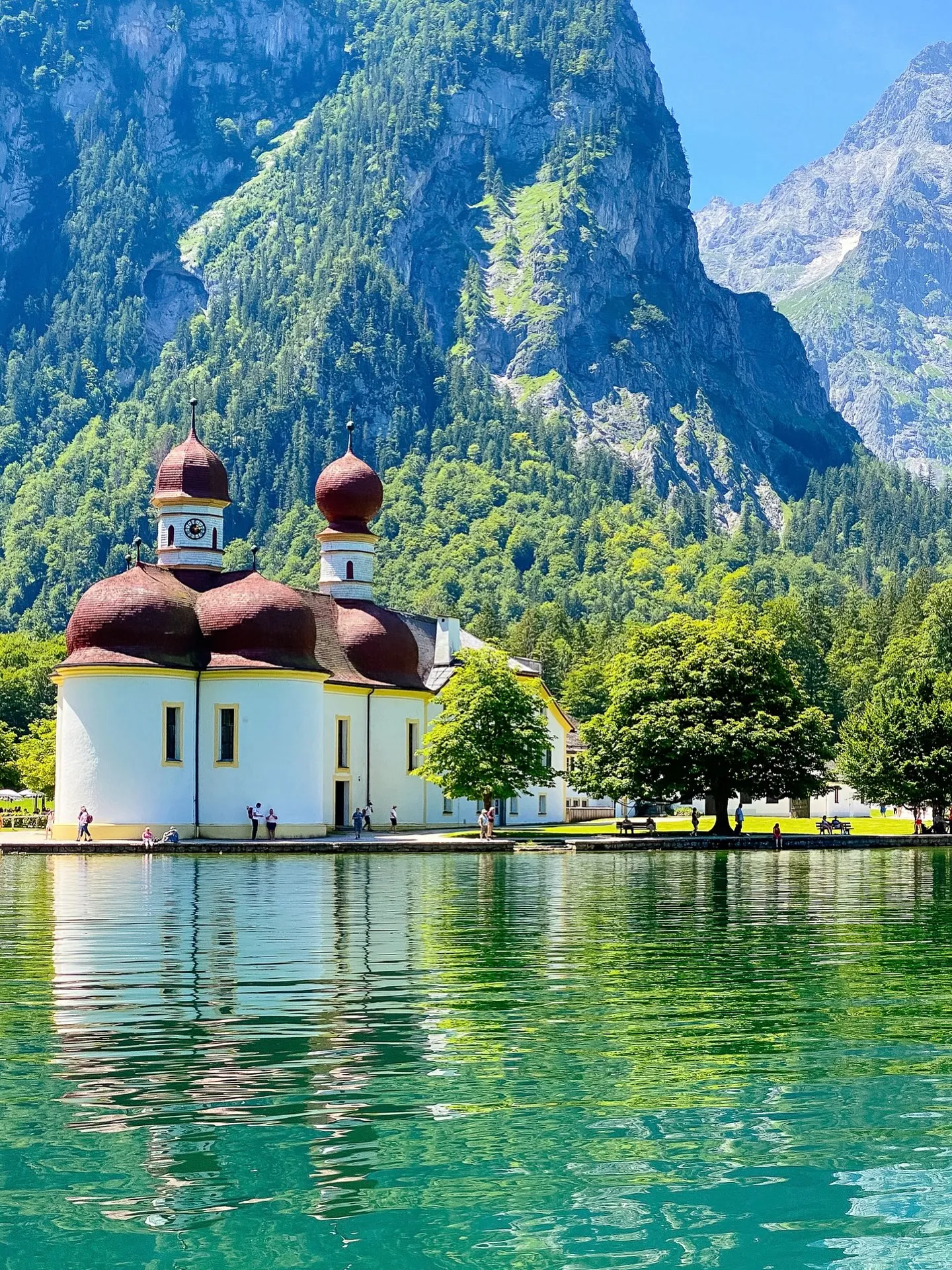 This spot is one of the most photographed scenes in Germany—and for good reason. The combination of the whitewashed church, wooden bridge, and dramatic mountains creates an unforgettable view.