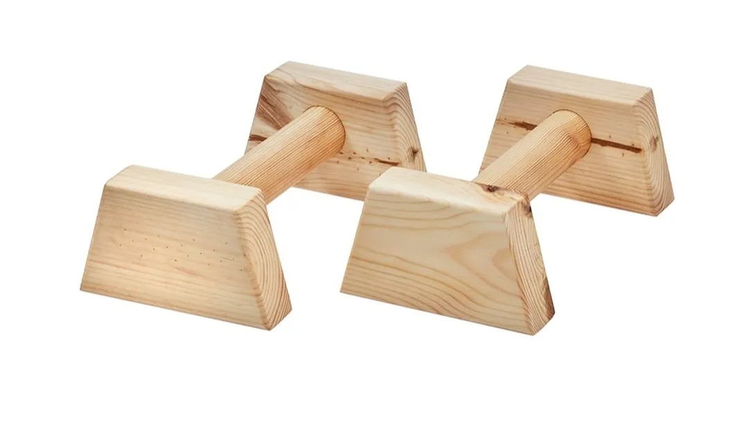 Parallettes are smaller than dip bars but just as effective for a wide range of exercises, particularly those that require handstands, L-sits, and push-ups. Using parallettes for push-ups elevates the movement and allows for a deeper range of motion, which leads to better chest, shoulder, and triceps development.