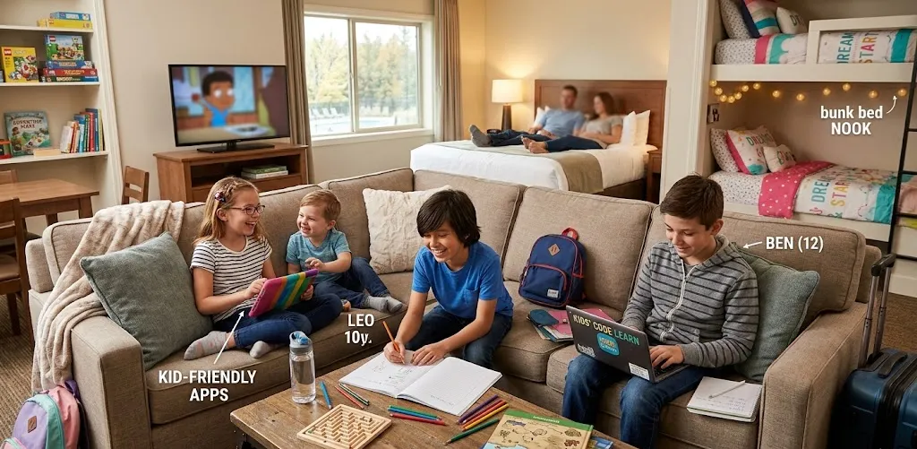✔ Family rooms or adjoining suites — space makes evenings more relaxed.