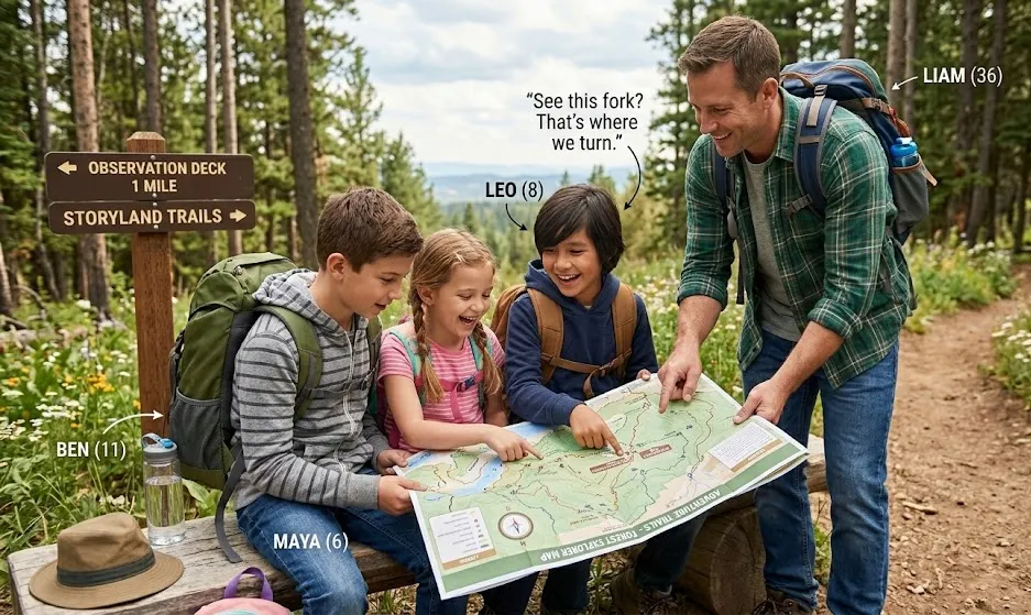 ✔ Kid roles — map reader, snack manager, photographer.