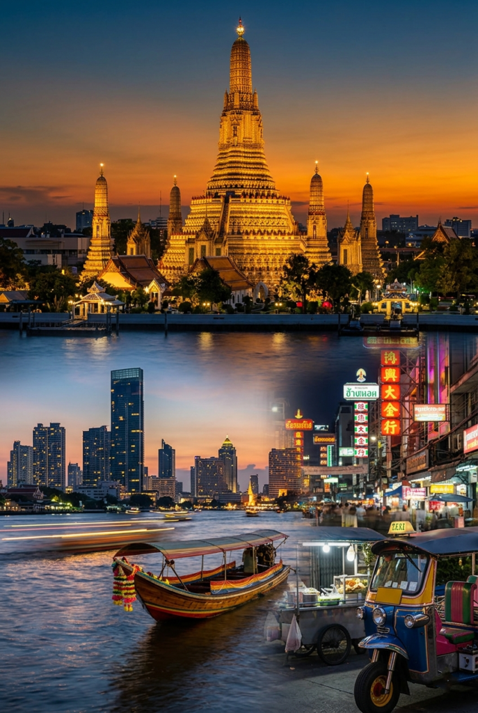 - Bangkok: Bustling capital with royal temples, markets, nightlife.
