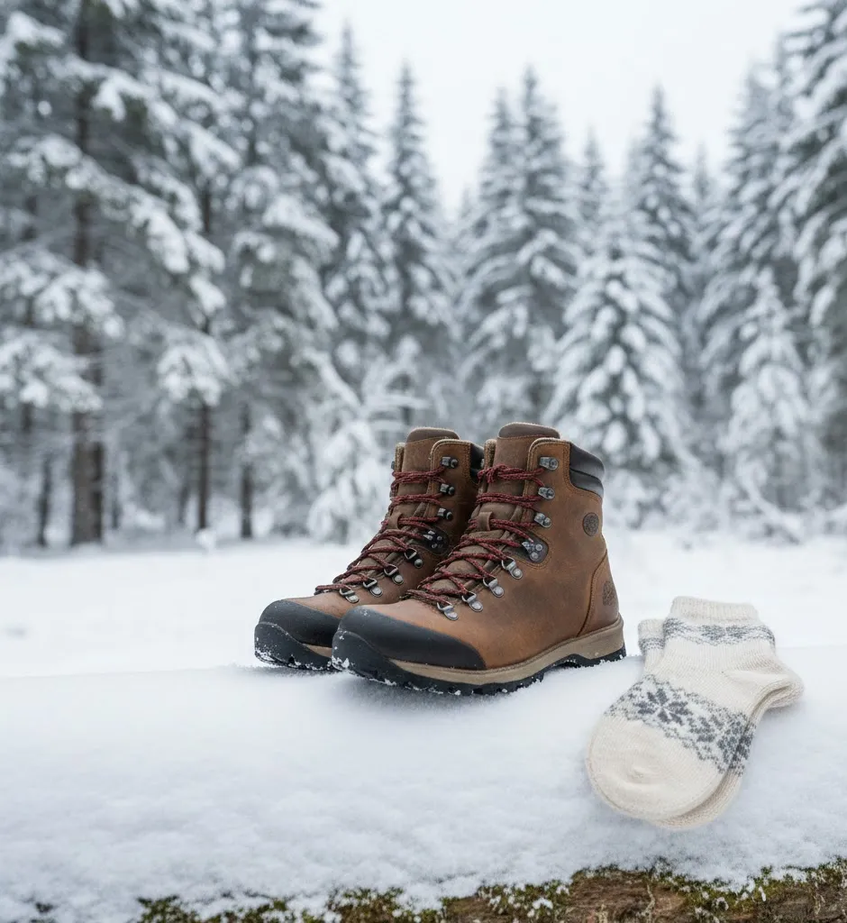 - Insulated winter boots with merino socks